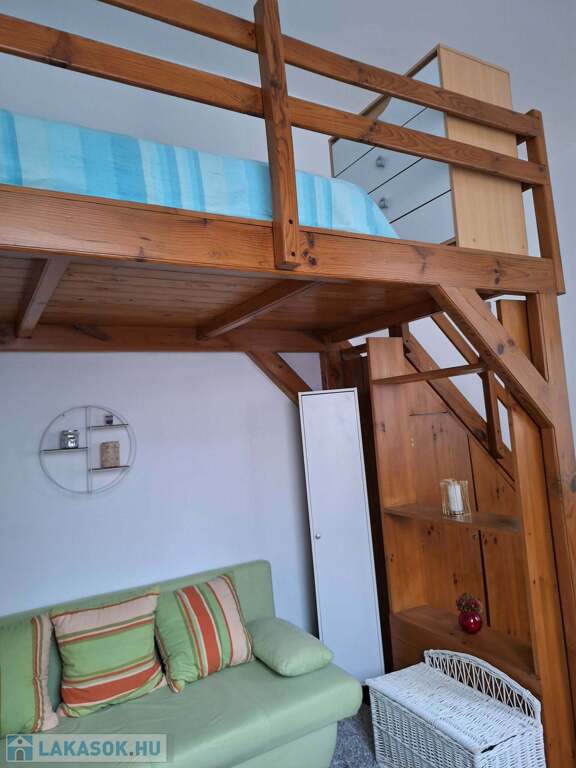 A lakás minden helyisége bútorozott. - Konyha beépített konyhabútorral, energiatakarékos kombi hűtővel, négy lángos főző- sütő gáztűzhellyel. Teljes konyhafelszerelés. - Kamra teljes polcrendszerrel. - Fürdő mosógéppel. A szobában TV. Galéria és a lépcső alatti polcrendszer tárolóval és akasztós szekrényrésszel készült. Igény szerint ágynemű garnitúrák huzattal, meleg takarók is biztosítottak.
