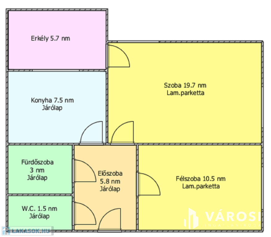 A lakásban 2 szoba, konyha, előszoba, fürdőszoba, külön nyíló W.C., erkély található.