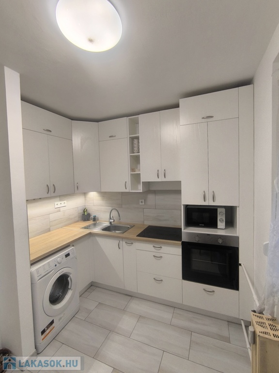 – Felszerelt konyha, hűtő, mosógép, mikrohullámú sütő, beépített sütő, villany főzőlap