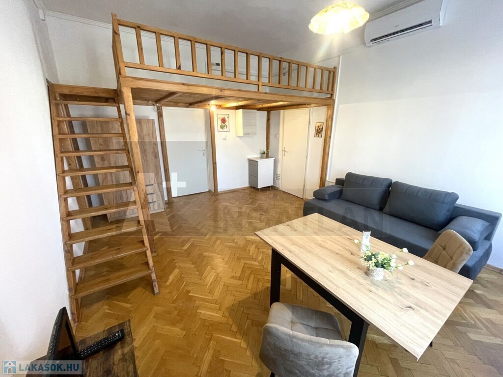 Szeged Alsóvároson , a Mátyás király téren , első emeleti , 38 m2-es , galériás , frissen felújított , modernizált , garzon lakás kiadó .