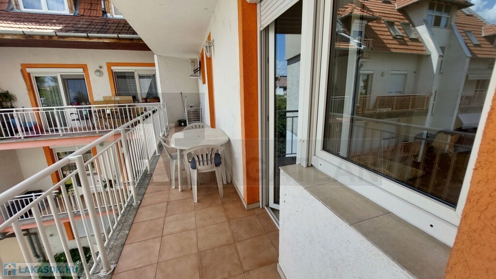 A lakáshoz tartozik egy belső udvarra néző, 13nm-es nagy erkély és egy utcára néző kisebb erkély is.