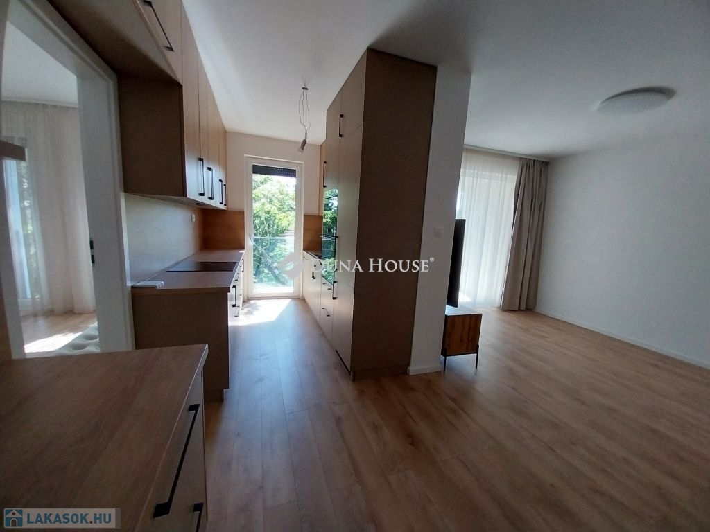 A lakásban a fiatalos, modern hangulat dominál. Központi része a nappali-étkező, ahonnan kijuthatunk a loggiára, erkélyre. A konyha minőségi gépekkel felszerelt.
