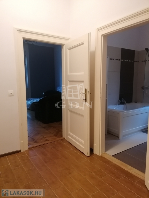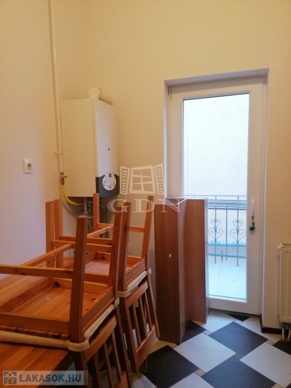 Kiadó hosszú távra ez a 140m2-es, társasházi lakás, amely egy külső lépcsőn közelíthető meg, nem zárt lécsőházból.