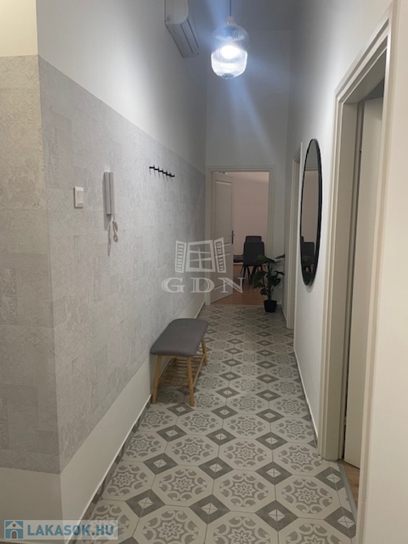 Szeged ikonikus épületében, a szépen felújított Református palotában kiadó ez a 69 m2-es, nappali + 2 hálószobás, étkező konyhás lakás.