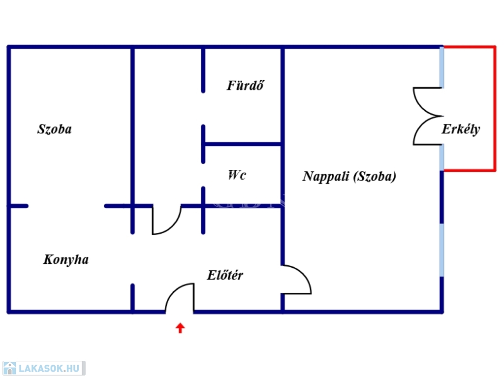 A lakás 54 nm nagyságú, elosztását tekintve, 2 különálló szobával rendelkezik, amiből a nagyobbik szobához tartozik az erkély. A zuhanykabinos fürdő és a wc külön helységben található.