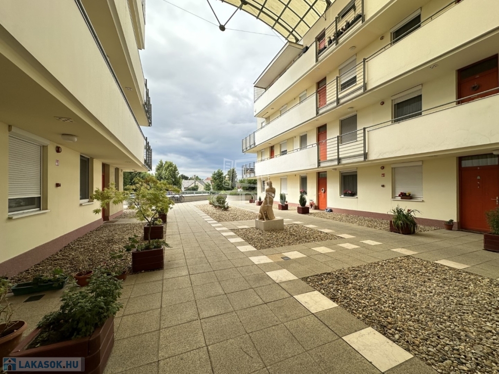 BL-004563. Zöld udvarházban, Alba Pláza közelében 2006-ben épült akadály mentes társasházban kiadó hosszútávra, egy földszinti, nappali + 1 szoba elosztású 50 nm-es, belső teraszos, bútorozott és gépesített, jó állapotú téglalakás.
