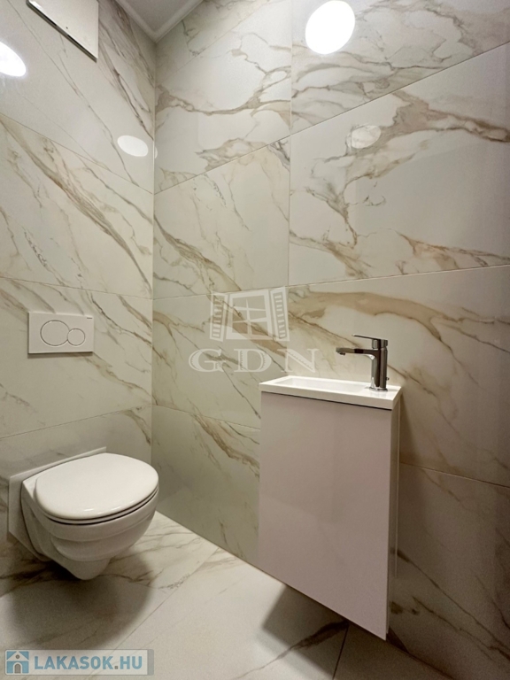 A lakásban a hideg és a meleg burkolatok prémium kategóriából lettek választva a hosszútávú időtállóság érdekében.