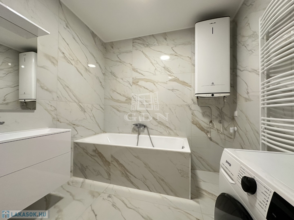 BL-004549. Belvárosban, modern újszerű társasházban, felszerelt lakás, azonnali költözéssel, zárt udvari beállóval együtt, hosszútávra kiadó.