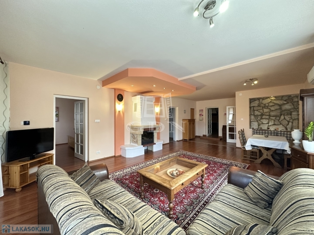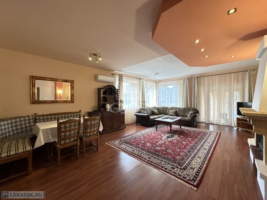 A fűtésről gázkazán gondoskodik, a hőleadás radiátorokon keresztül megoldott. Alternatív fűtésként fatüzelésű kandalló is használható a nappaliban. Nyáron a kellemes hőmérsékletről, klíma gondoskodik. A nappaliból biztosított a kijutás a télikertbe. A szobák és a nappali burkolata laminált padló, a többi helység járólappal burkolt. A lakáshoz, saját használatú 32 nm-es terasz is tartozik.