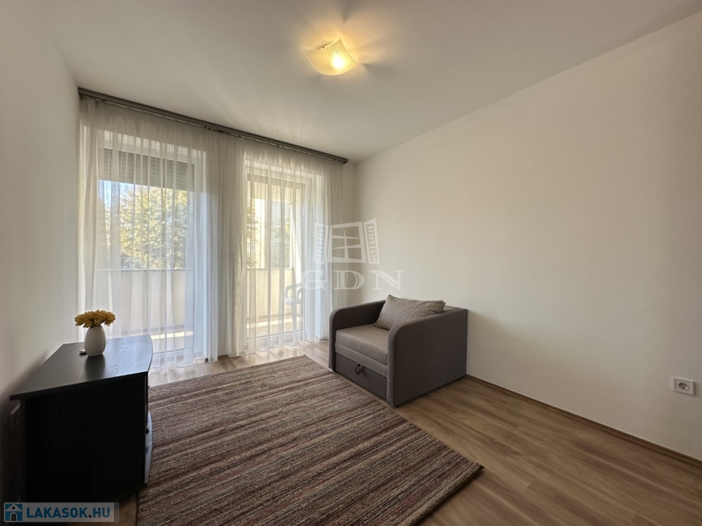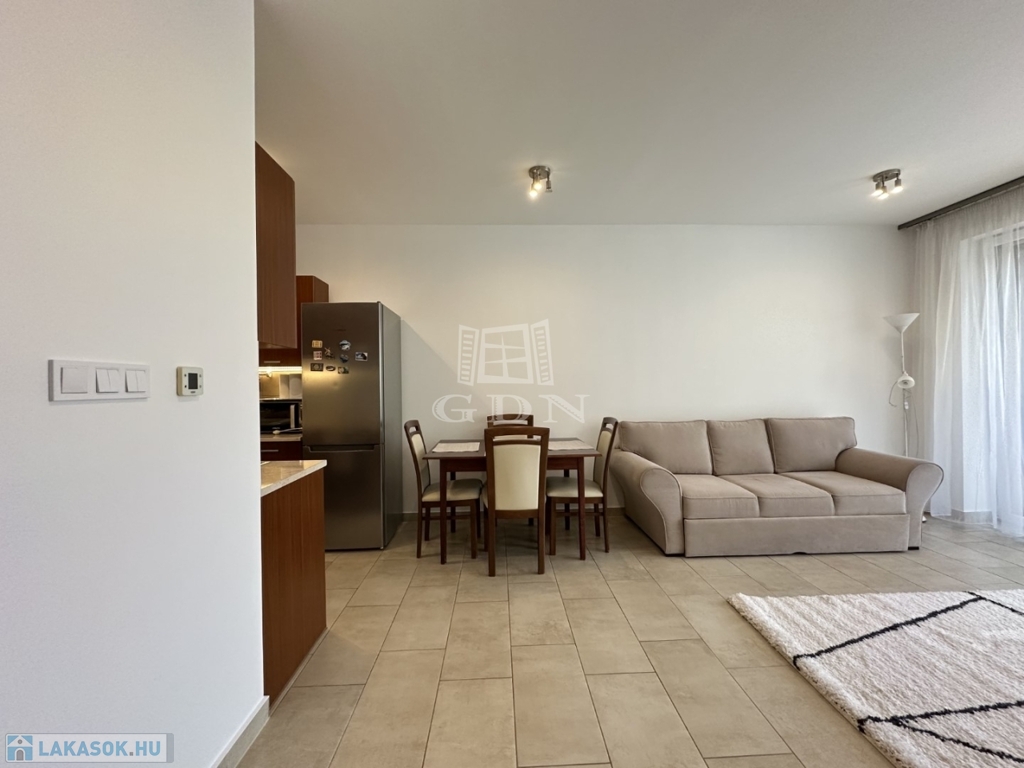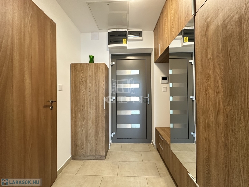 Az ingatlan összesen 66 m² alapterületű, amelyhez 2 db erkély kapcsolódik. Az igényes belsőépítészeti megoldások révén a lakás beépített szekrényekkel, hűtőszekrénnyel és teljesen gépesített konyhával várja új bérlőit.