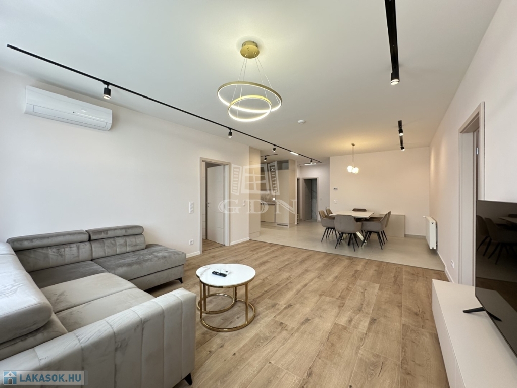 BL-004548. Belvárosban, modern újszerű társasházban, felszerelt lakás, azonnali költözéssel, zárt udvari beállóval együtt, hosszútávra kiadó.