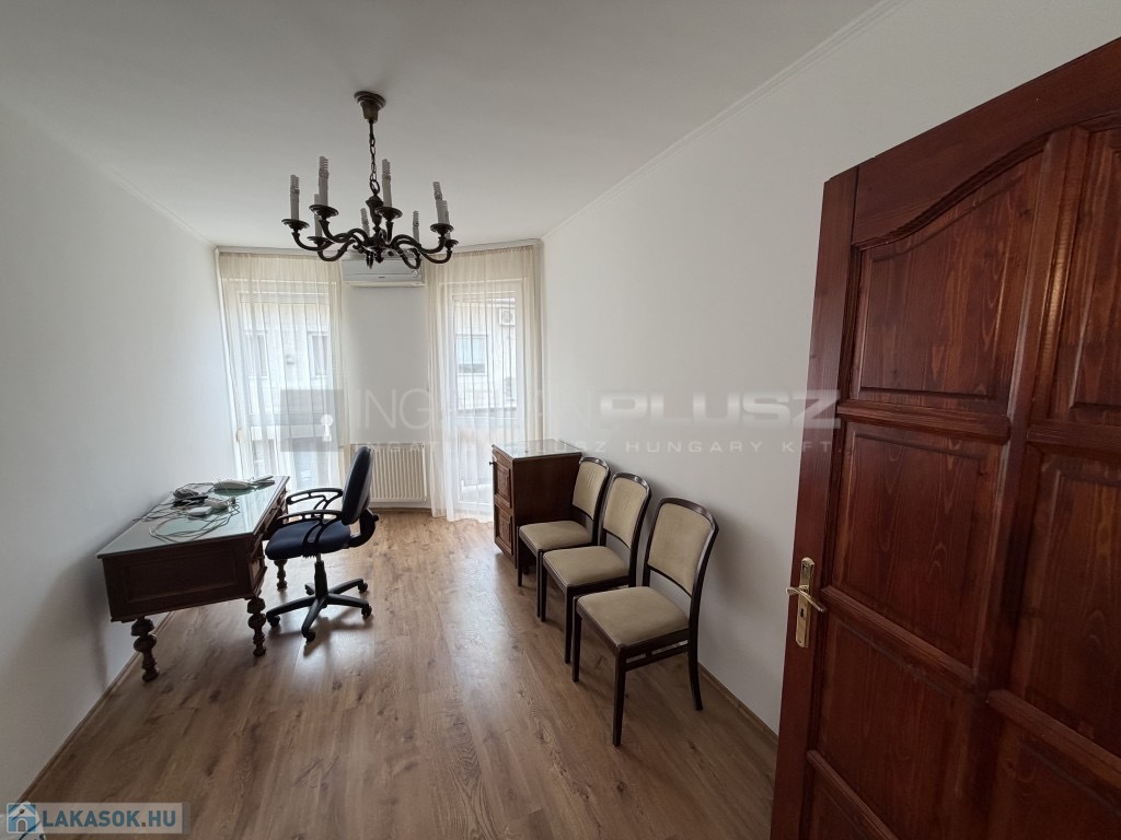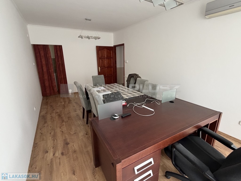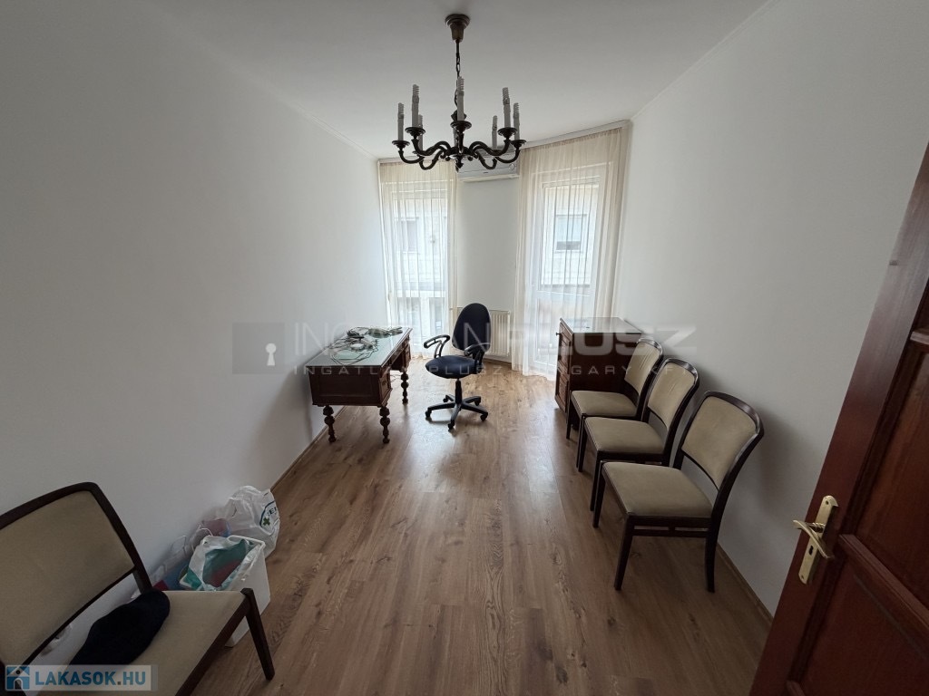 A közös költség 14 000 forint, és a lakás iroda- vagy lakáscélra is alkalmas.