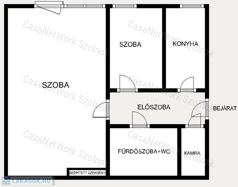 •  a lakás helyiségei: két szoba, konyha, fürdőszoba+WC, közlekedő, kamra, francia erkély