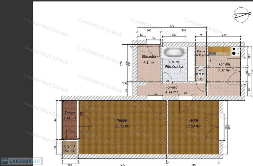 - az ingatlanban előszoba, közlekedő, nappali szoba, hálószoba, konyha, fürdőszoba és külön illemhelyiség található