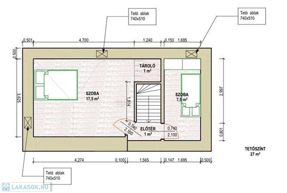 • Kovácsoltvas korlátos lépcső a tetőtérbe, alatta praktikus tároló
