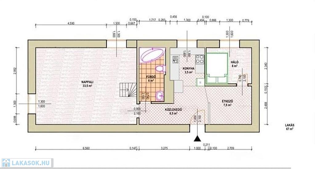 • 33,5 m²-es nappali étkezőrésszel, a lakás központi élettere