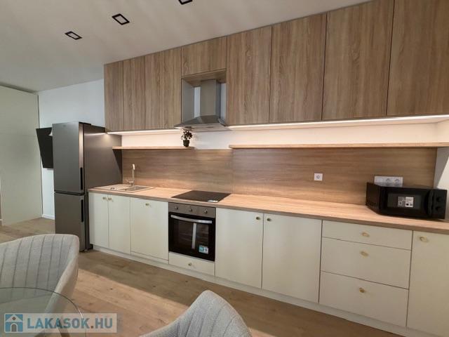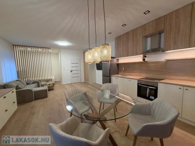 Ebben a lakásban minden megtalálható, ami a kényelemhez szükséges, új konyhabútor beépített gépekkel sütő főzőlap páraelszívó mosó és mosogatógép gránit mosogatótálcával, hűtővel. A fürdőszoba kádas kialakítású tágas, prémium burkolatokkal, törölközőszárítóval. Minden helyiség elektromos redőnnyel ellátott, a nappaliban egy hűtő fűtő klíma biztosítja a nyári kellemes hőmérsékletet. Lokáció szempontjából remek helyen vagyunk, hiszen sétatávolságra a tópart, és minden más szolgáltató egység. Bár központban helyezkedik el, mégis privát elszeparált, saját udvarral lekerített. A rezsi fix, 50 ezer Ft/hó ami tartalmazza a korlátlan víz villany fűtés TV internet és fűtésköltséget, sőt a szemétszállítást is.