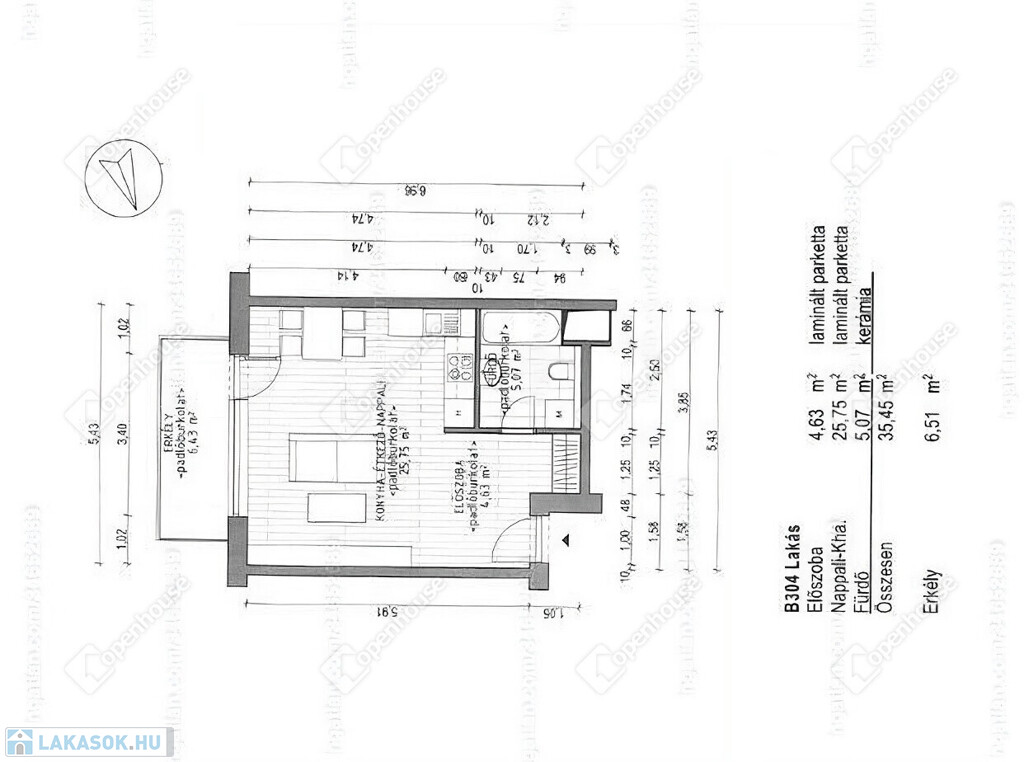 A lakás amerikai konyhás nappaliból és fürdőszobából áll, továbbá egy 6,5 m²-es tágas erkély is tartozik hozzá.