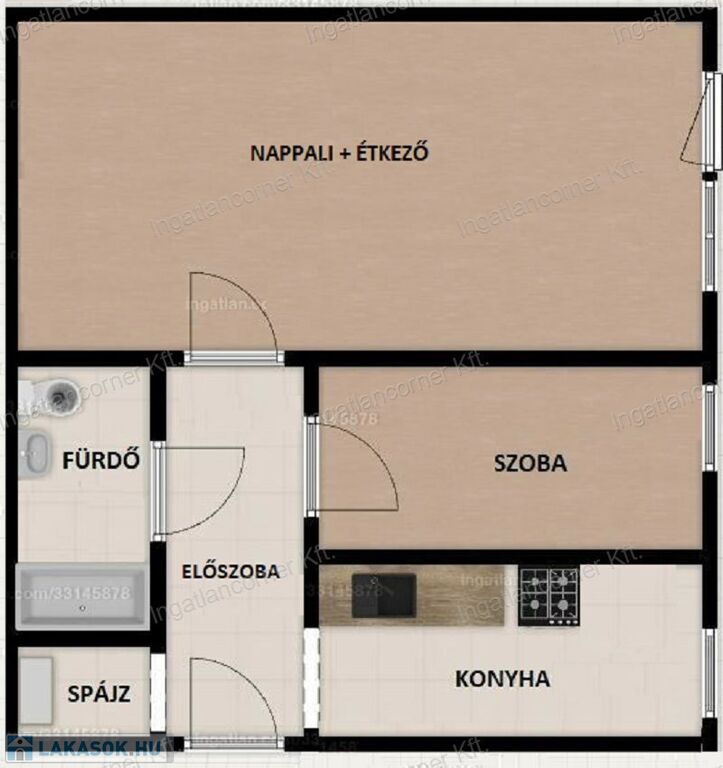 Tulajdoni lapon 1+félszoba megnevezéssel szerepel.