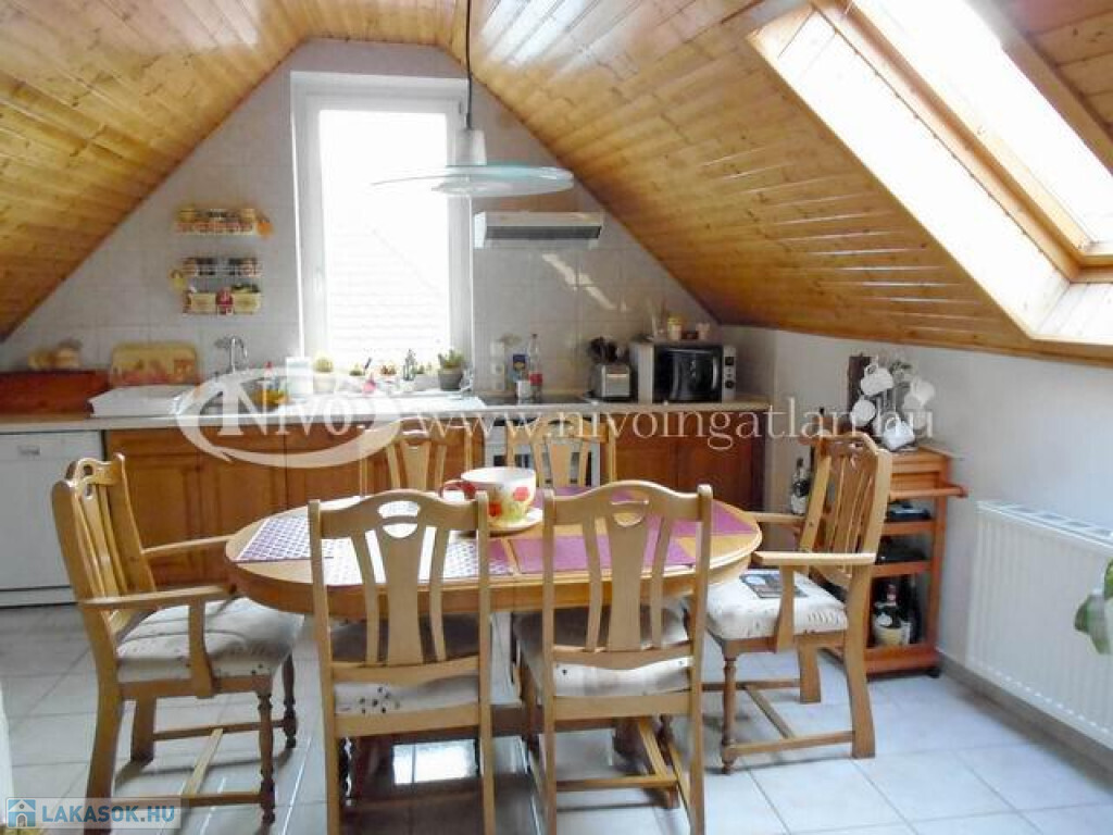 Veszprém abszolút belvárosában, patinás megjelenésű polgári házban, 3 szintes épület tetőterében, 147 m2-es 3 szobával rendelkező (két egymásból nyíló) szép állapotú tégla lakás. Az ingatlan részben bútorozott, beépített szekrényekkel ellátott, az ablakok redőnyökkel, a lakás klímával, riasztóval felszerelt.