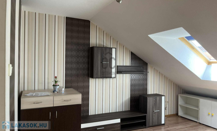 A tetőtérben(4. emeleten) elhelyezkedő lakás egy Étkező-Konyha,2 Szoba és külön Fürdőkádas Fürdőből, Wc -ből áll,mely részben bútorozott.