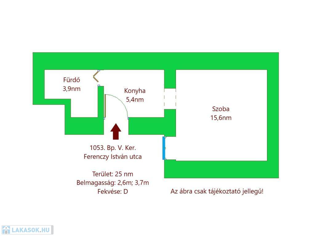 Eladó Budapest V. ker. Ferenczy István utcában - az Astoria és a Károlyi kert közelében - rendezett, lift nélküli ház földszintjén egy 25 nm-es, 1 szobás, udvarra néző lakás, beépített bútorokkal. Fürdője zuhanyzós , WC-vel.