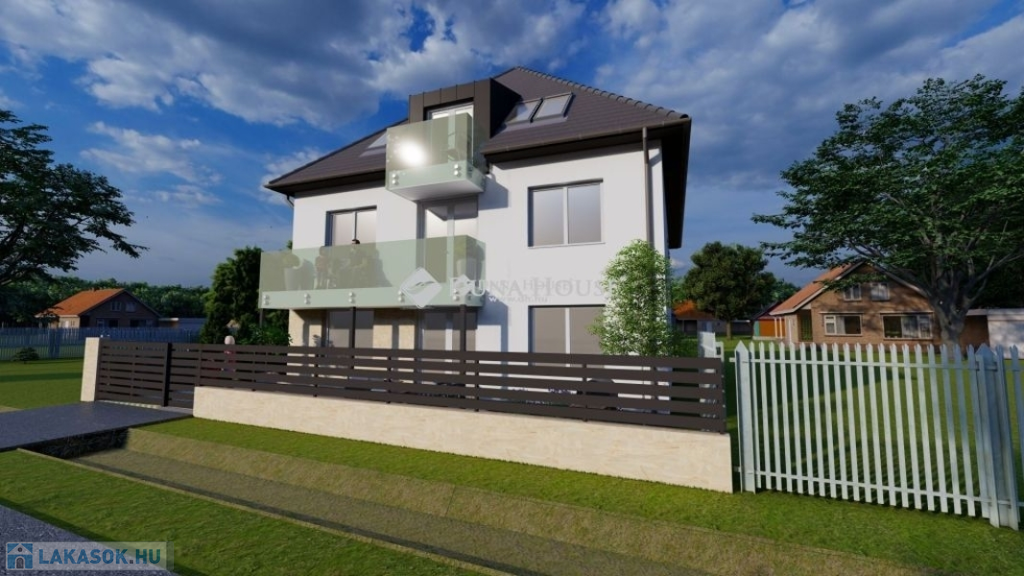 Az otthont a zárt lépcsőházon át közelíthetjük meg, melyben egy napfényes nappali, két szoba, konyha, fürdő, wc, előszoba és gardrób szoba kerül kialakításra. A gardrób szoba leendő tulajdonos igényei szerint akár szobaként is funkcionálhat. A lakáshoz tartozik egy 6,2m2 nagyságú terasz is.Az épület 30 N+F téglából készül 15cm vastag hőszigeteléssel. A nyílászárók motoros redőnyökkel és szúnyoghálóval együtt kerülnek beépítésre.Az otthon melegét központi hőszivattyú biztosítja, mely hűtésre is alkalmas. A lakásokba külön hőmennyiségmérők kerülnek. A meleg víz ellátásról hőszivattyús villanybojler gondoskodik.A burkolatokat 10.000 Ft/m2.