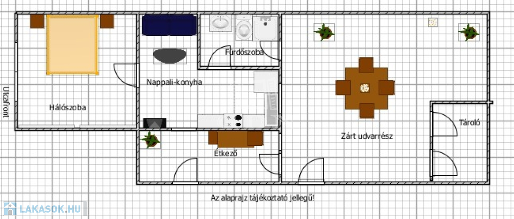 Az ingatlan elrendezése: nagy, tágas 1+1/2 szoba, konyha, világos belépő, tusolós fürdőszoba.