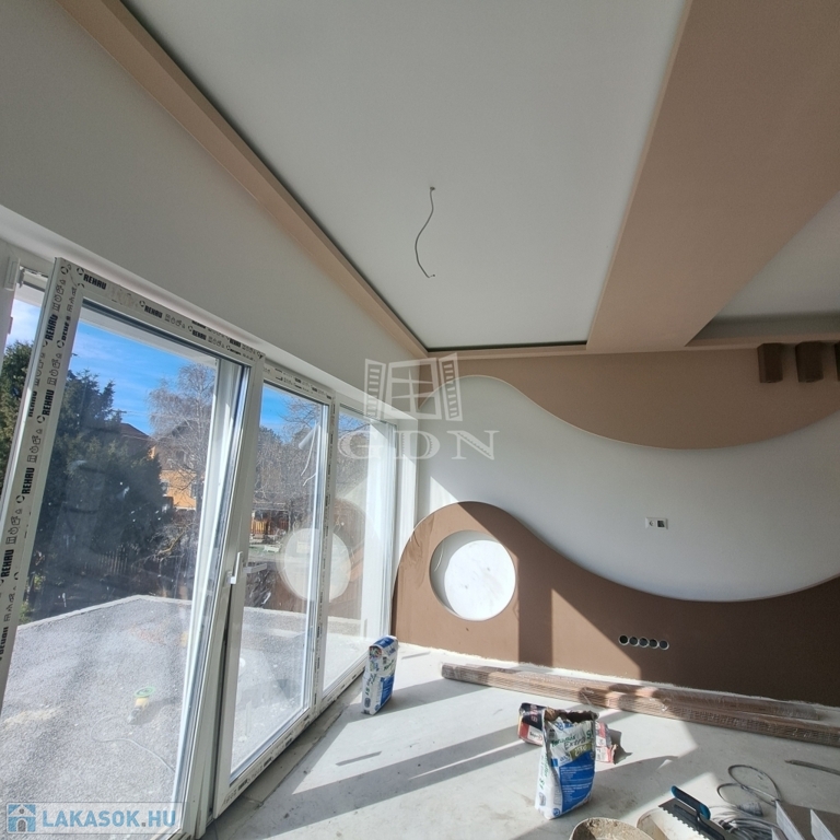 - A kivitelezés jelenleg az utolsó simításoknál tart, így az új tulajdonos egy szinte teljesen kész, korszerű otthonba költözhet.