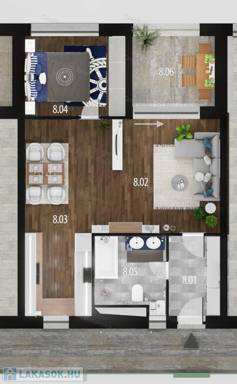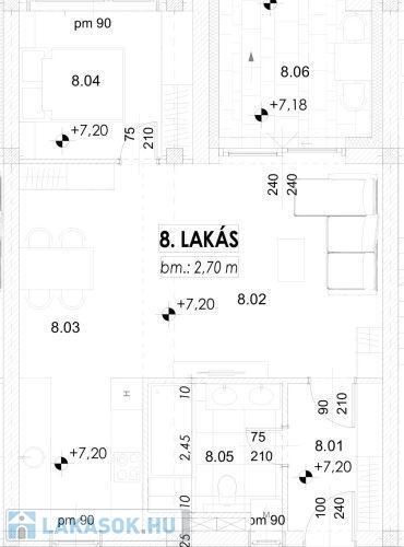 - 56,25 m2 lakótér + 8,64 m2 loggia