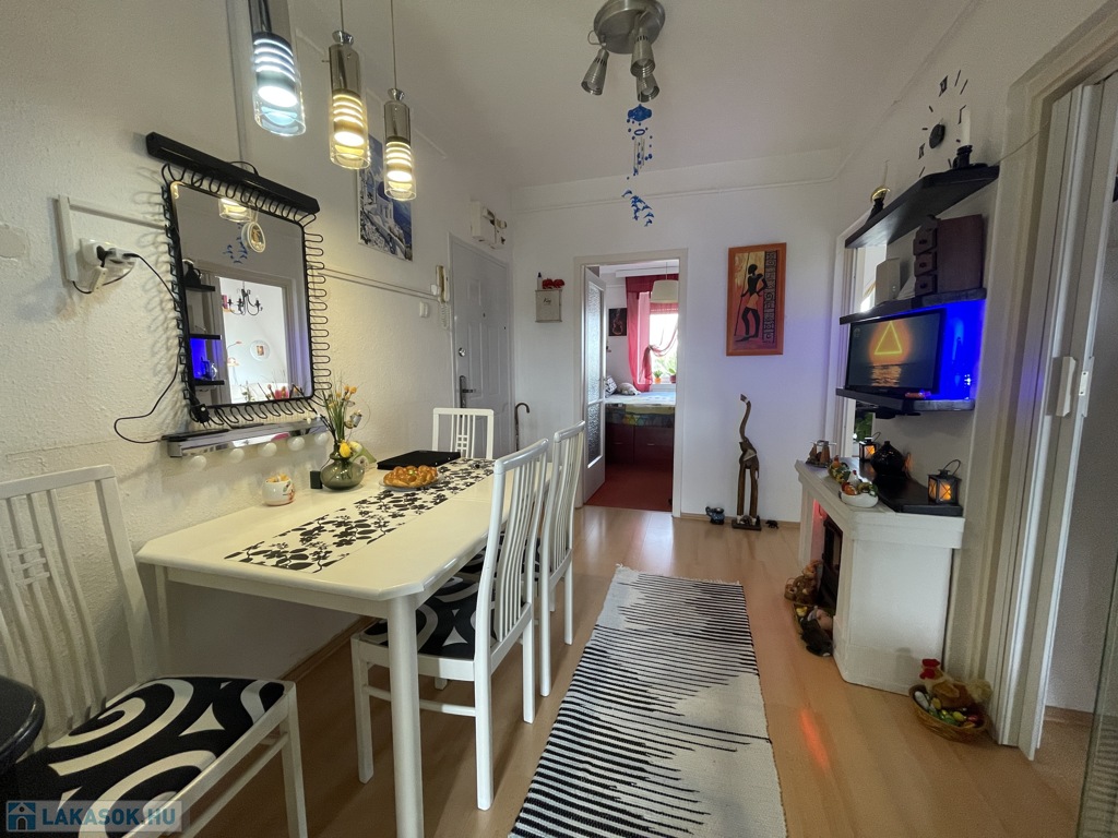 A lakás alapterülete 62 m², elosztása praktikus és élhető. Helyiségei: előszoba, nappali, konyha, étkező, 2 hálószoba, fürdőszoba, külön WC, valamint egy 4 m²-es erkély. A konyha melletti fal részleges bontásával tágas étkezőt alakítottak ki, amelyet egy elektromos látványkandalló tesz különösen hangulatossá.