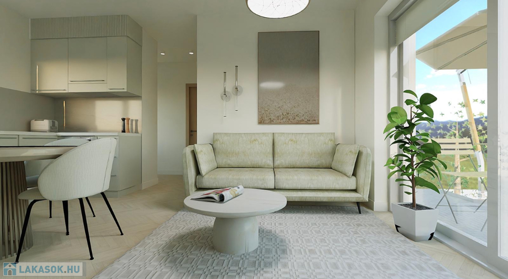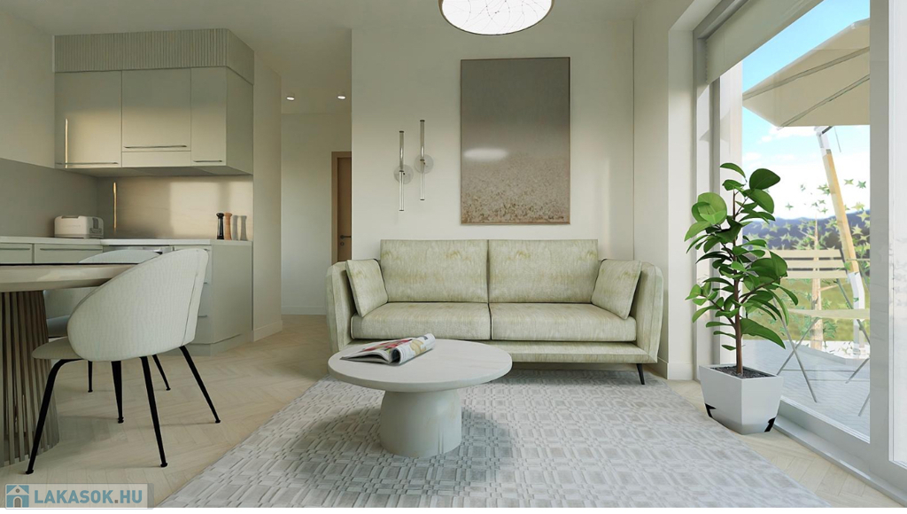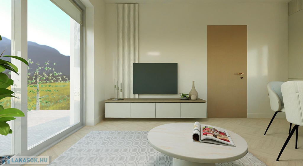 Eladó Balatonalmádi egyik legkedveltebb, zöldövezeti részén egy 51,38 m²-es, modern földszinti apartman egy újépítésű társasházban.