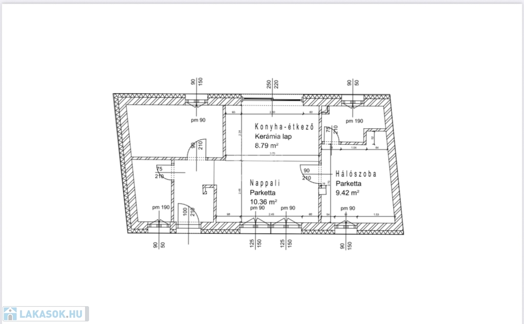 - Nappali–konyha–étkező: 22,75 m²
