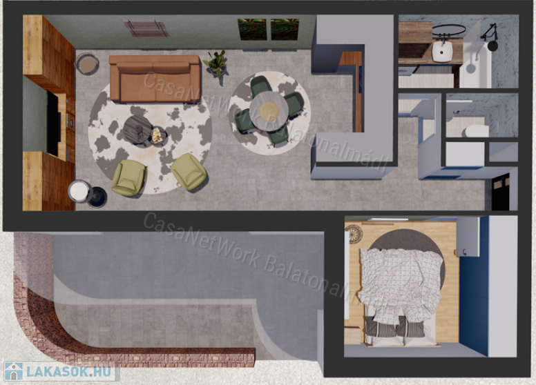 Nem csupán a belső tereket, de a lakások közvetlen és tágabb környezetének megalkotását is a kényelem és az igényesség jellemzi. Minden egyes lakáshoz privát, terasz tartozik.
