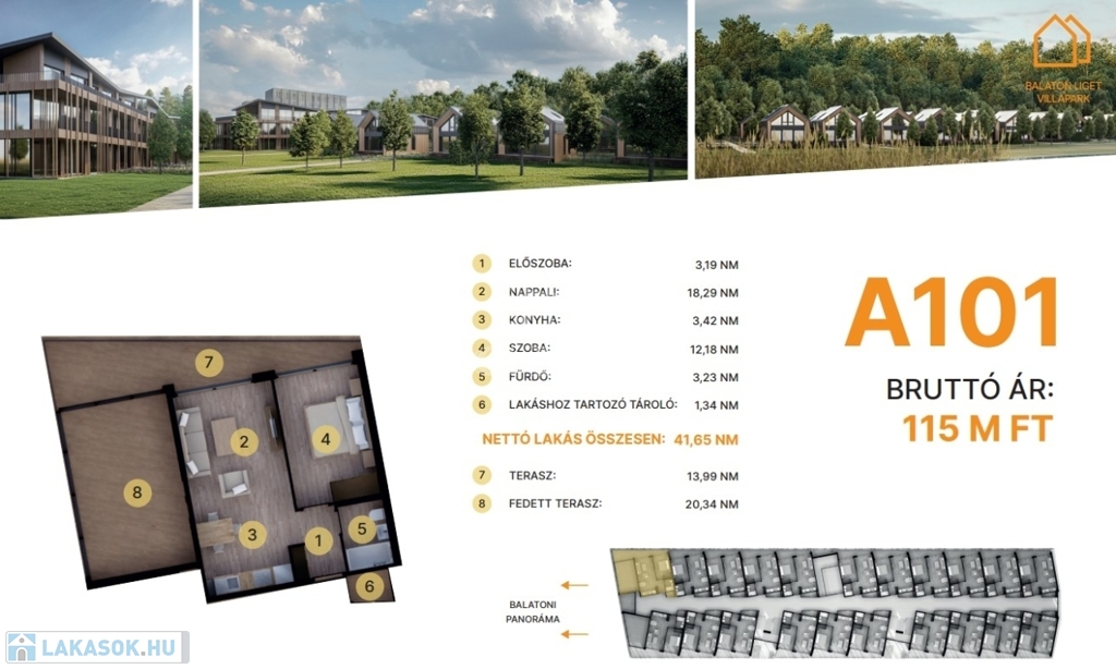 Az első emeleten további 21 lakás érhető el, 47–75 m² közötti méretben.