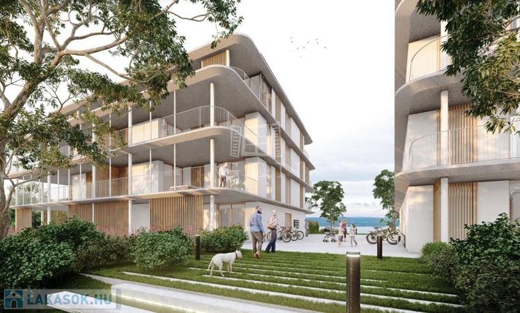 Az épületegyüttes a földfelszín alatt, a pinceszinten (parkoló szinten) egy tömeget képez, mely a földfelszín felett három épületszárnnyá (lépcsőházzá) válik szét. Az épületszárnyak közötti sétányokon burkolt terek és kiemelt kazettákban elhelyezett intenzív zöldtetők kerülnek kialakításra. A Balaton felé néző közös használatú kertrészben pedig egy szintén közös használatú medence is helyet kap.