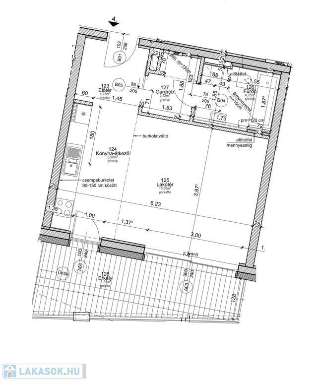Ez az DK-i tájolású lakás 36,94 m²-es összterülettel rendelkezik, amely magában foglal: