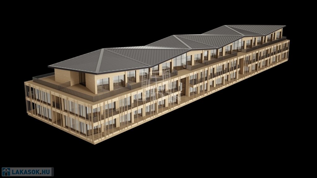 Az első emeleten további 21 lakás érhető el, 47–75 m² közötti méretben.