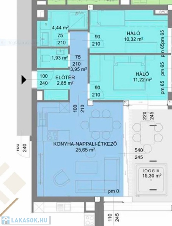 A hirdetésben szereplő lakás 60,34 m2 lakóterületű + 15,3 m2 loggia, 1 + 2 szobás, első emeleti. Igény esetén két hálószobássá alakítható.