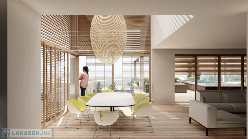 A projekt különlegessége, hogy a legfelső Penthouse lakások medence (6 m X 2,4 m) telepítési lehetőséggel is rendelkeznek. A bioklimatikus pergolával felszerelt teraszok összenyithatóak, ill. télikertként is funkcionálhatnak.