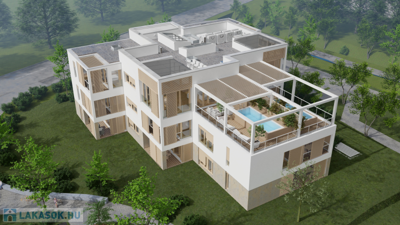 Két háromszintes és egy négyszintes épület épül, hatalmas, 11824 m2-es telken, amely biztosítja a családias hangulatot és a fokozott kényelmet, nyugodt, csendes hangulatot. A majdan igényesen parkosításra kerülő kertben a sétányokat éjszakai LED világítás teszi hangulatossá.