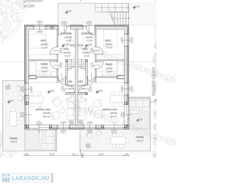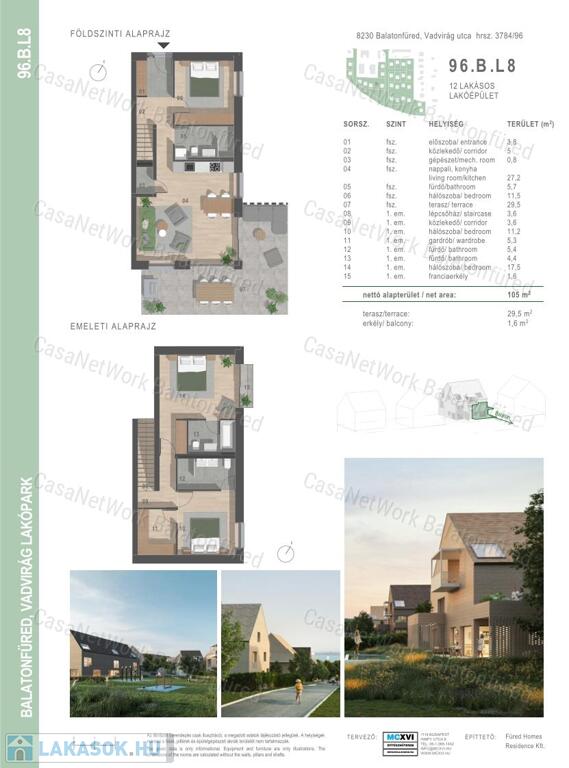 - a lakások mindegyike terasszal és cc. 200 m2-es kerttel rendelkezik
