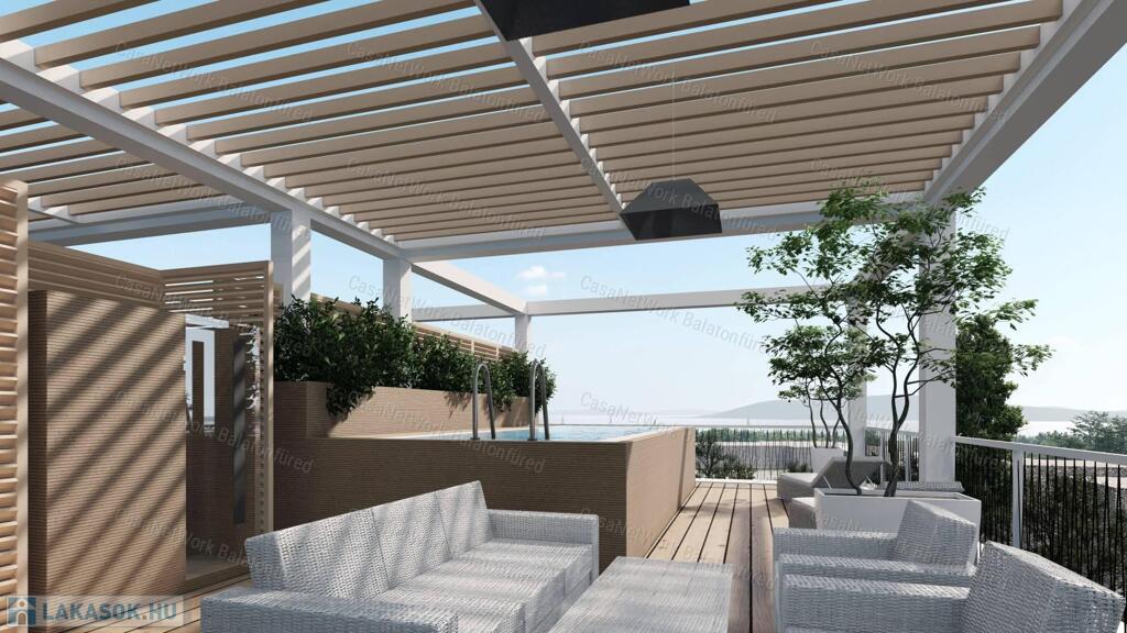 A Penthouse lakások bioklimatikus pergolával felszerelt teraszai