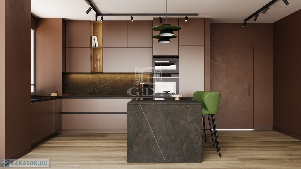 - Minden lakás 3 hálószobát, 2 fürdőt, egy vendég WC-t, valamint amerikai konyhás nappalit és