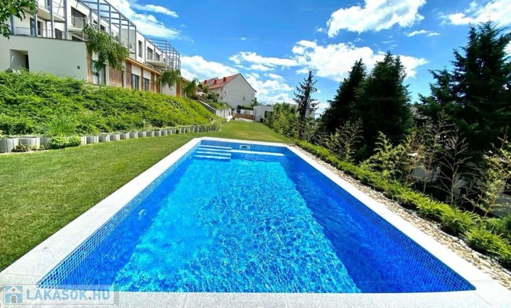Közös költség: 45.000 Ft/hó, amely tartalmazza a ház üzemeltetését, kert- és medencekarbantartást, lift fenntartást, valamint a beállók és tárolók költségét is.