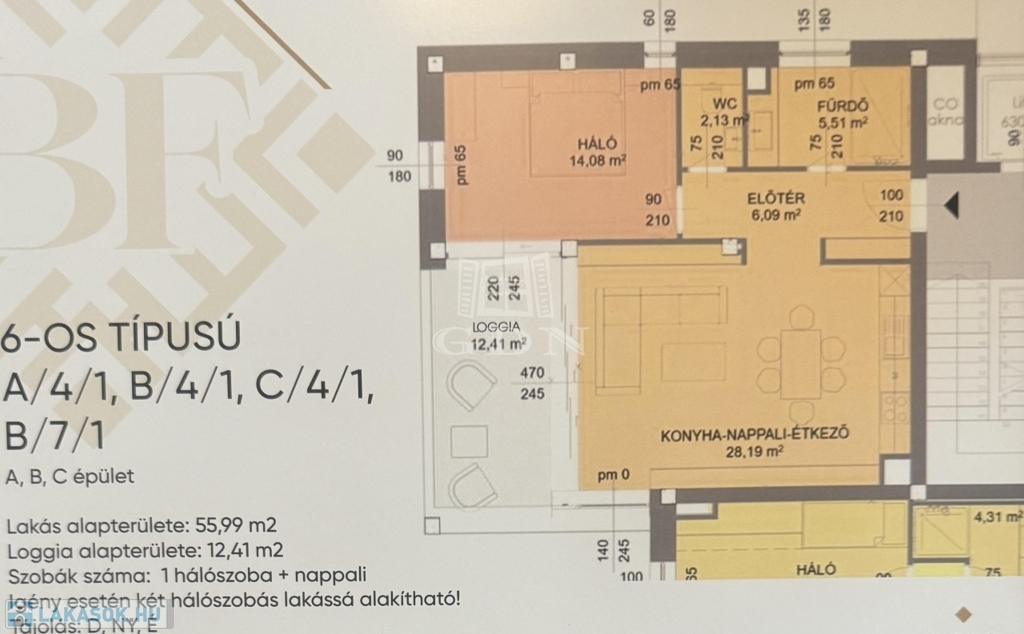 Az B/6-os típusú első emeleti lakás 113,66 négyzetméteres, tartozik hozzá 2 loggia amelyek alapterülete 20,22 négyzetméter. A 113,66 négyzetméteren amerikai konyha, 3 hálószoba, nappali, gardróbszoba, 2 fürdőszoba, valamint vendég WC is található. A loggián napozhat vagy akár egy jakuzzit is telepíthet. Az ingatlanhoz mélygarázsok és tárolok is megvásárolhatóak.
