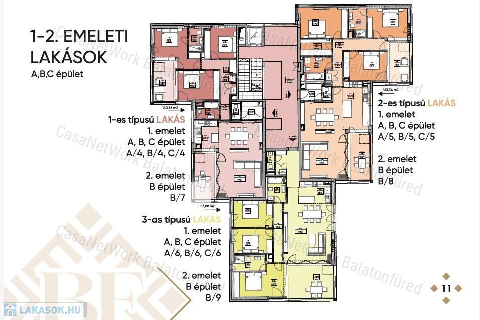 A lakások eladási ártáblázata csak az emelt szerkezetkész kivitelű lakások árait tartalmazza.