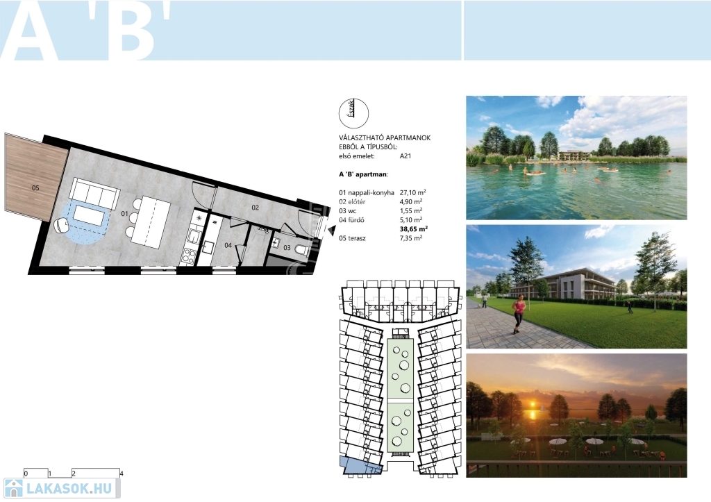 Balatonmáriafürdőn, közvetlenül a Balaton parton, modern formai világban tervezett, a korszerűség és elegancia mellett, minőségi, illetve időtálló anyagfelhasználás tekintetében, vegyes rendeltetésű lakások, 2025 átadással.
