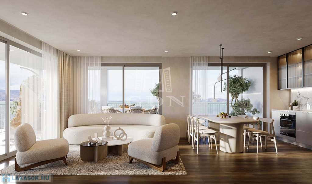 Balatonmáriafürdő központi részén, körbekerített parkosított telken, saját partszakasszal rendelkező lakópark 3.ÜTEM, negyedik emeleti,