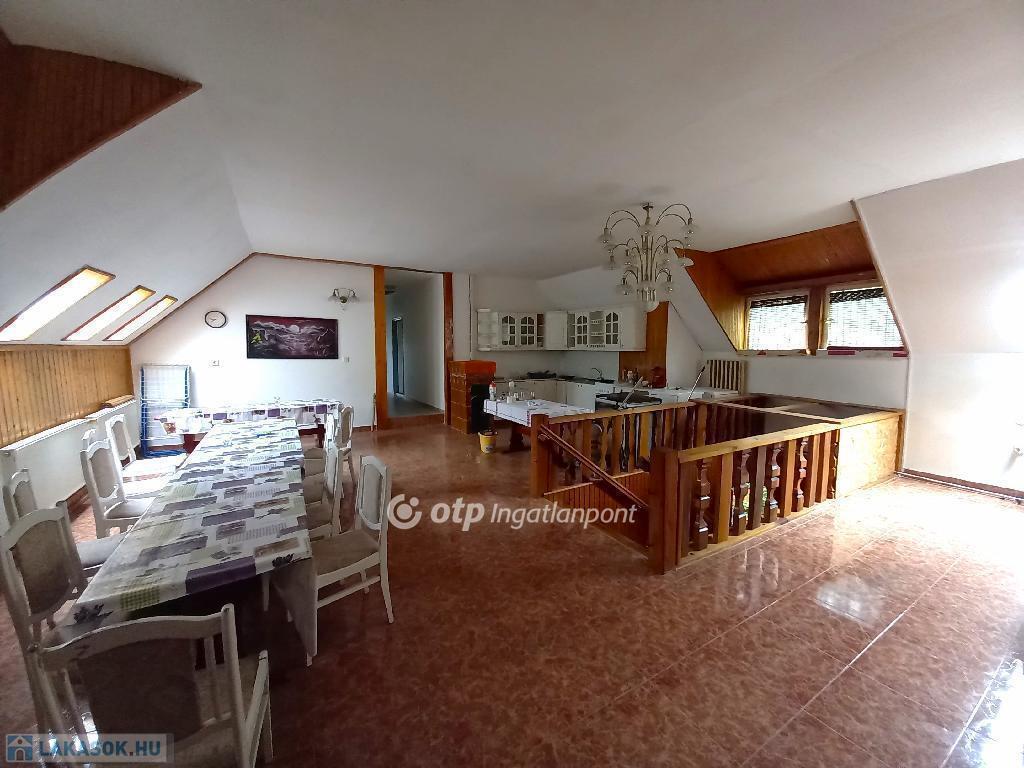 Balaton déli part, Balatonmáriafürdőn eladó egy partközeli étterem tetőterében kialakított 197 m2-es lakás. Külön bejáraton közelíthető meg, parkolni az utcán lehet. Fűtése gázkazánnal és radiátorokkal került kialakításra. A nappali/konyhán kívül 6 szoba található benne, mindegyik külön fürdőszobával. Az épület felújításra szorul.